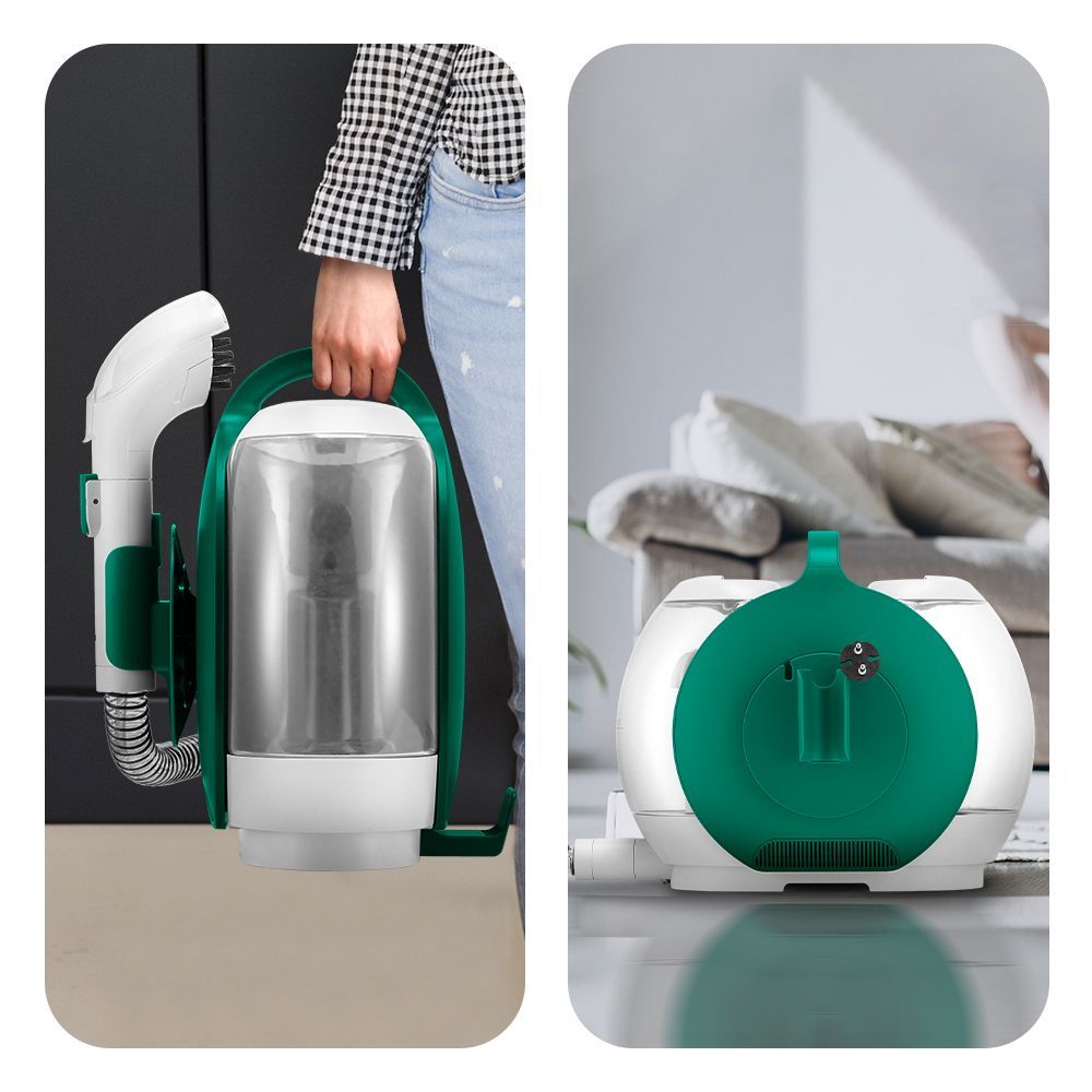 Благодаря небольшим размерам и весу моющего пылесоса его легко перемещать за ручку ближе к зоне уборки. У моющего пылесоса есть держатель для шланга и держатель для шнура, поэтому его можно компактно сложить и удобно хранить.