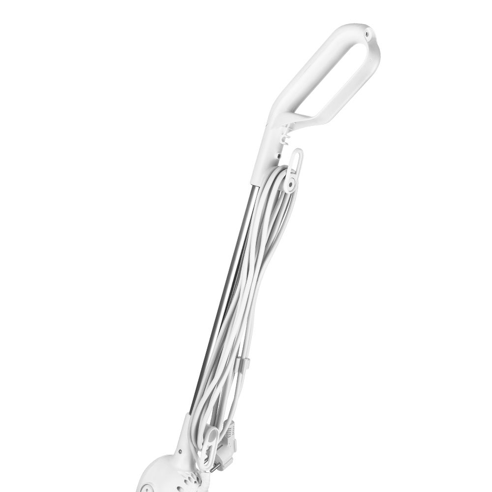 Швабра лёгкая и простая в использовании. При хранении она не займёт много места. Шнур длиной 5 м не сковывает и не ограничивает ваше перемещение во время уборки. На ручке и корпусе швабры имеются держатели для смотки шнура.
