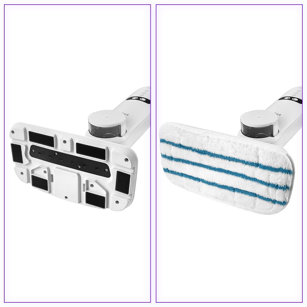 Пар проникает внутрь загрязнения, размягчая и растворяя его, а затем с помощью тряпки большой площади частички грязи смываются. Тряпка надёжно крепится на липучках. Её можно стирать в стиральной машине при 60 °С.