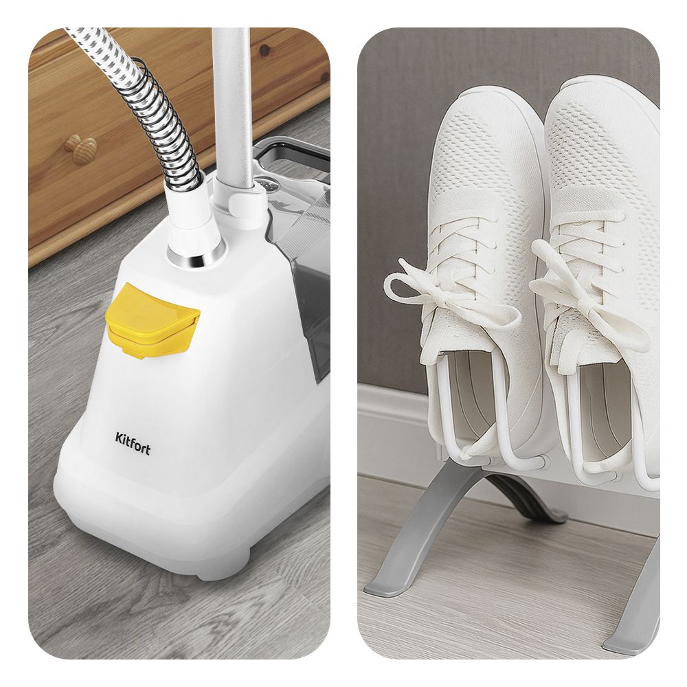 Отпариватель КТ-9155 и сушилка для обуви КТ-6559 — два помощника, которые заботятся о том, что вы носите каждый день. С ними одежда всегда выглядит опрятно, а обувь высыхает быстрее.