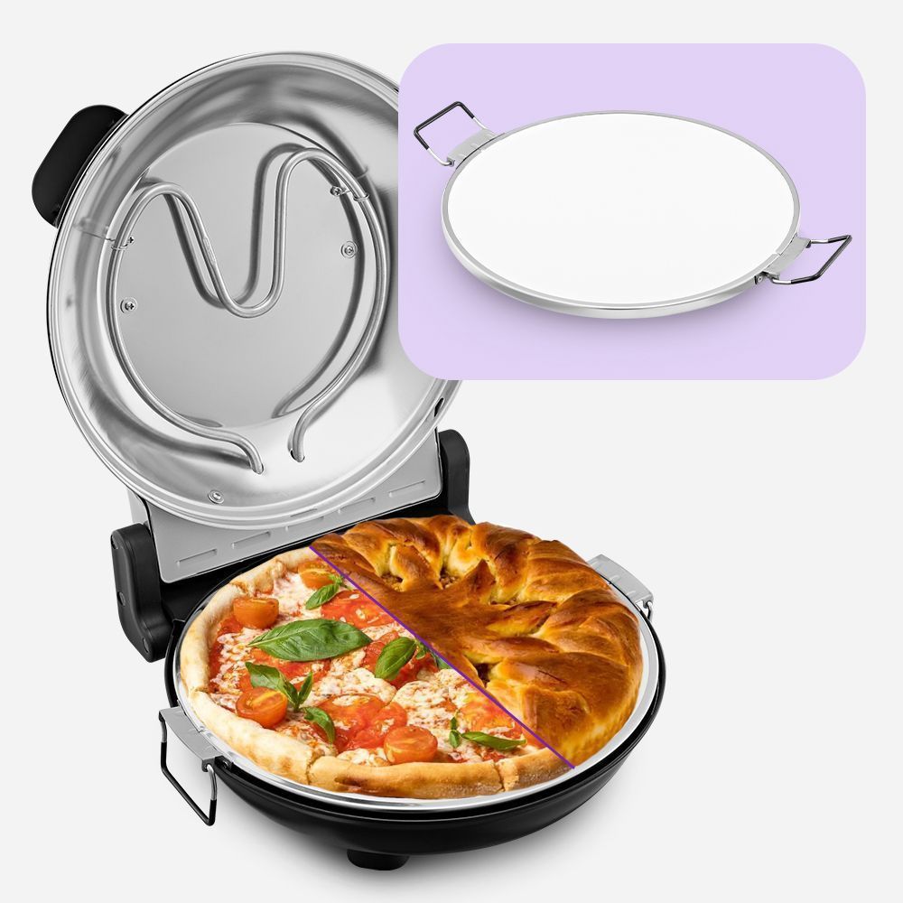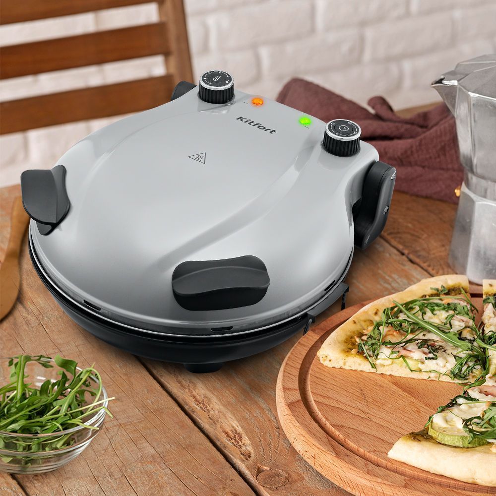 Пиццамейкер КТ-4643 – универсальное устройство, способное заменить духовку. Идеально подходит для приготовления пиццы, различных пирогов, сырников, горячих бутербродов, а также запечь овощи или мясо. Прибор максимально разогревается до 360–400 градусов.