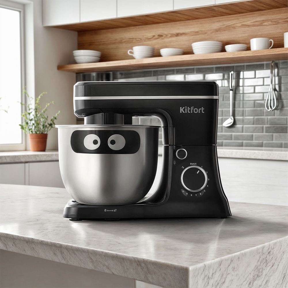Миксер оснащён планетарной системой смешивания: во время работы насадка вращается вокруг своей оси и одновременно движется по окружности по внутреннему объёму чаши. Это обеспечивает идеальное качество смешивания без комков.