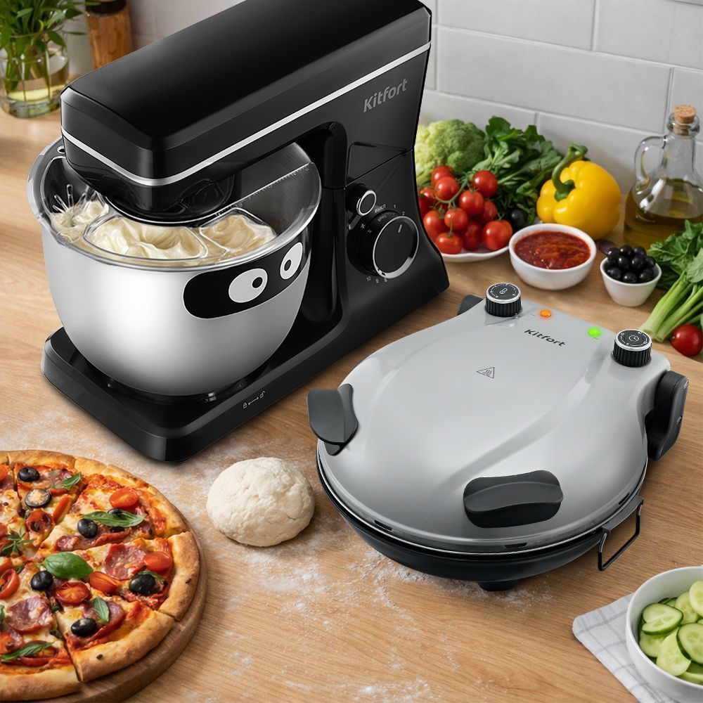 Набор Планетарный миксер КТ-4411 + Пиццамейкер КТ-4643 идеален для выпечки. Миксер вымешивает любое тесто без комочков, а пиццамейкер легко приготовит пиццу. Вместе они делают готовку легче, а результаты — вкуснее.